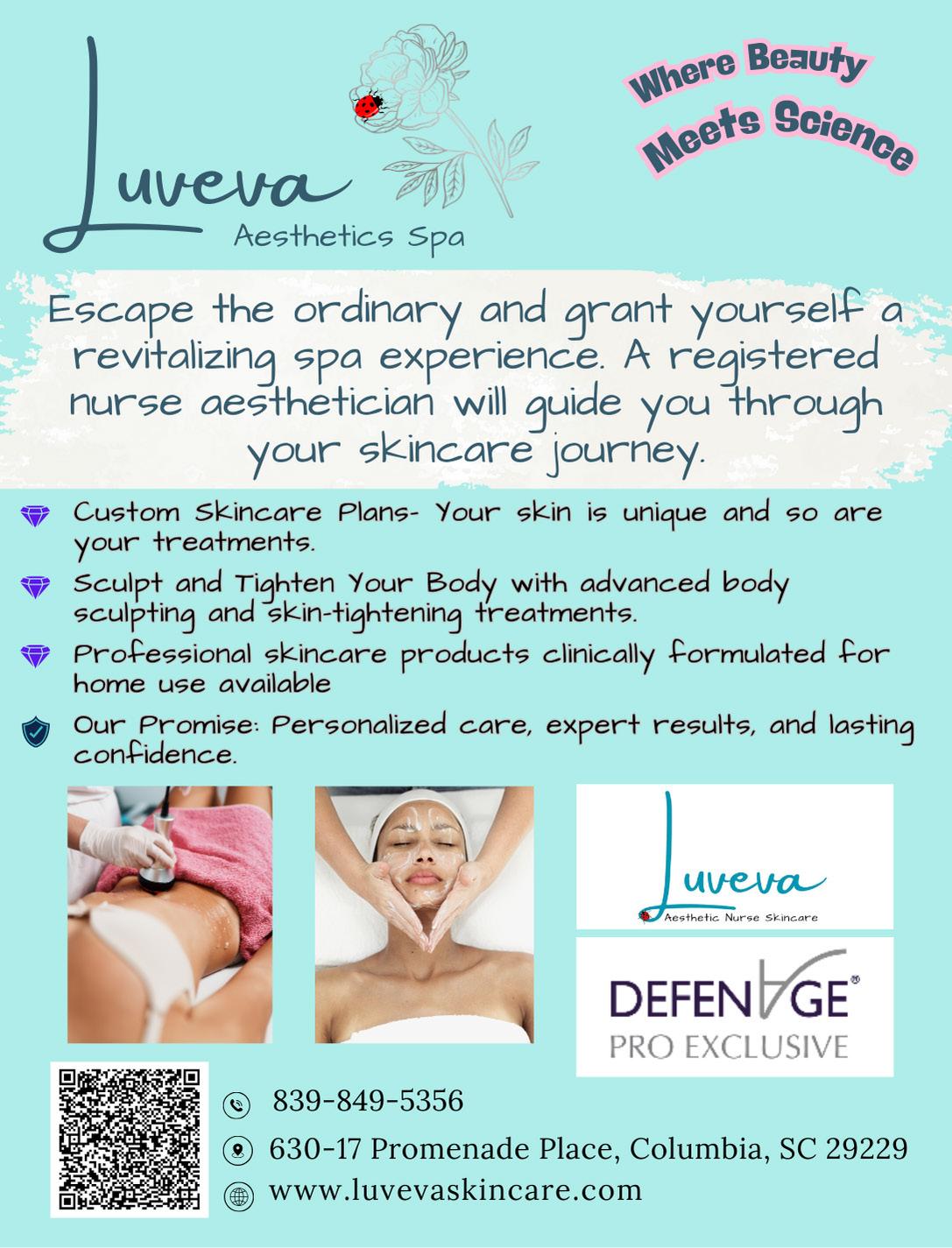 Certified Esthetician 630-17 Promenade Pl, Ste 401, Columbia LuvevaSpa.GlossGenius.com