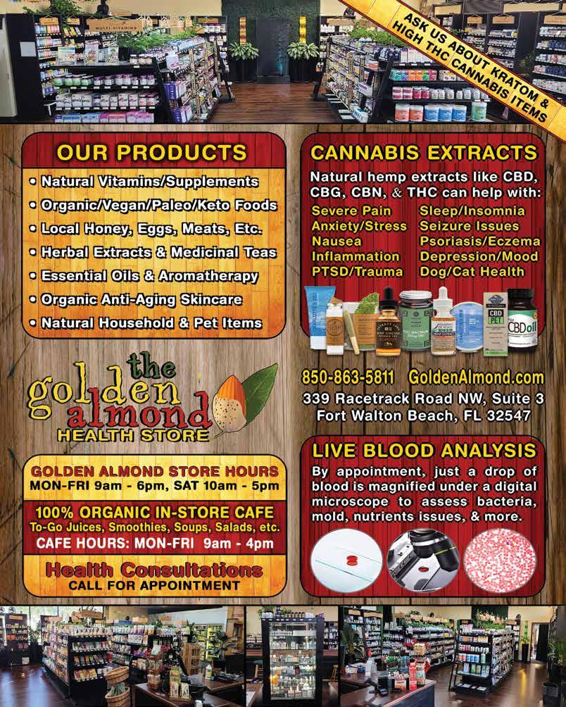 Niceville's only fully stocked health food and supplement store. In our new expanded location providing all of your favorite brands and hard-to-find products to keep you healthy. We also carry local farm-raised beef (grass-fed & finished), pork, chicken, eggs and dairy products. Knowledgeable staff. See ad, page 35.