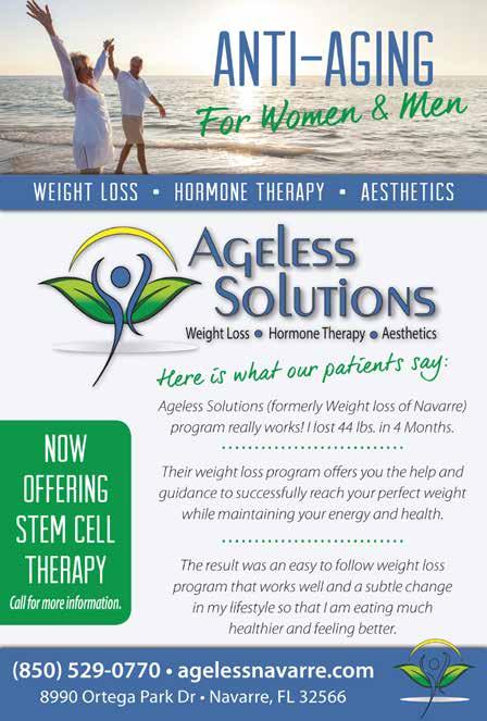Board-Certified Gynecologist MD, offering full GYN services and proud to feature MonaLisa Touch Laser, a non-invasive treatment for symptoms of low hormones or menopause. Stop suffering and start living. Call for appointment. Offices in Gulf Breeze and Navarre. See ad, page 2.