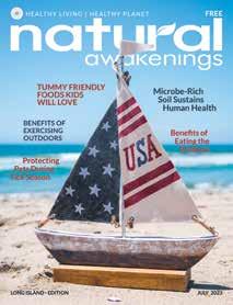 DEPARTMENTS 8 community news briefs 11 health tips 14 health briefs 18 global briefs 20 eco tip 21 therapy spotlight 22 product spotlight 24 yoga 25 creative expression 26 feature 30 wise words 32 conscious eating 34 fit body 36 healthy kids 38 natural pet 41 online exclusives 42 resources 45 calendars 46 classifieds 24 ESSENTIAL OILS AND YOGA 30 ANNE BIKLÉ on the Advantages of Regenerative Farming 32 HUES OF HEALTH Benefits of a Colorful Diet 34 GREEN EXERCISE Reconnecting with Nature 36 GUT HEALTH FOR KIDS Clever Strategies for Picky Eaters 38 PROTECTING PETS FROM LYME DISEASE Prevention and Symptom Management Tips CONTENTS Natural Awakenings New York City – Long Island July 2023 THE MICROBIOME CONNECTION 26 7 July 2023