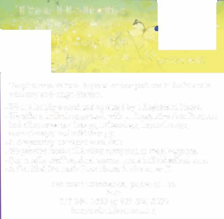Cristina is an internationally acclaimed massage therapist, non-invasive weight loss specialist and certified manual lymphatic drainage therapist, offering massage, reiki, bioacoustic mat therapy, full-spectrum infrared sauna, weightloss treatments and more. You receive a transformative experience with personalized solutions in real time that address your wellness goals. Happie Soul Wellness. Wellness. Redefined. See ads, pages 10 and back cover. u