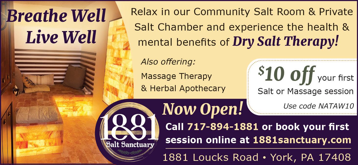 Features two salt therapy rooms –a community salt room and private salt chamber. We also offer individual and couples’ massages; an herbal apothecary, stocked with herbal tinctures, extracts, salves, balms and lotions from local and national providers; gemstones, jewelry, books, organic chocolates and upcycled items; plus, nature-themed crafts and artwork from local artists. See ad, page 8. u