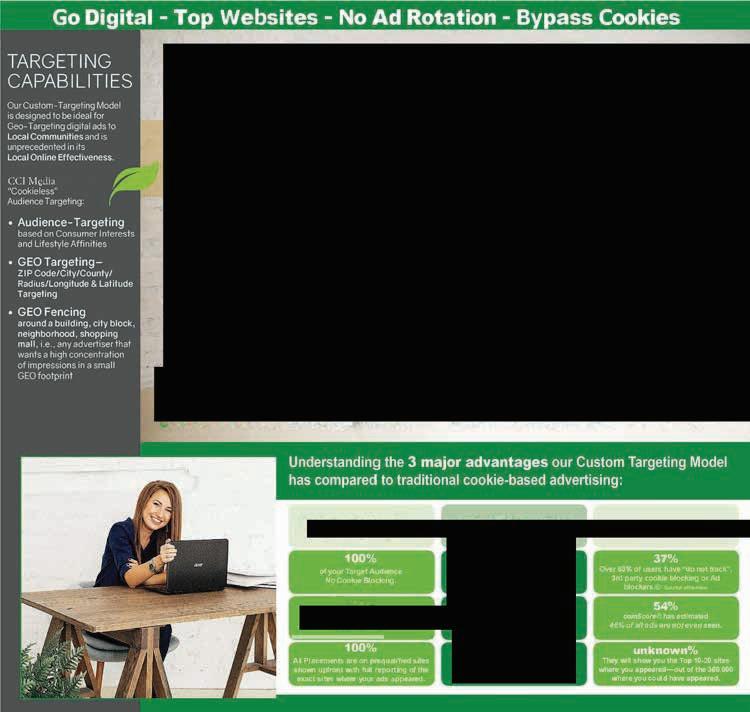 2 Pittsburgh, PA NaturalAwakeningsSWPA.com Call Now for Premium Online Advertising! Exclusive Product that Provides Amazing Results! A New Paradigm in Hyper Local, Online Advertising CCI Media Get Your Ad in Front of Consumers, in Their Own Community Our company's Custom Ta rgeting Model is a supe rior local on line alternative to cookie-based ads be cause it circumvents cookie/ad blockers, targets big brand websites, and uses sophisticated research to � .., �dentify the interests and behaviors of the consumers that vis it them. ONTACT US 521 publisher@NaturalAwakeningsSWPA.com (724) 271 8877 CCI Media =-= -_--· ii199W9.' ·· �l'.Placements-ar! Above·the Fold , �= \ .. ·=- ,.. ·� ✓ TOP ADVERTISER CONCERNS REACH VIEWABILITY TRANSPARENCY Local Online Advertising : -' 100% AUDIENCE REACH !'t-100% VIEWABILITY fl' 100% Website TRANSPARENCY Others All Ads are Above The Fold COMING IN THE JANUARY ISSUE