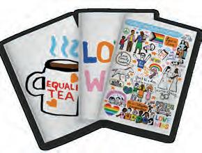These vibrant accessories feature a distinctive barbed wire print, designed in collaboration with Amnesty International. They have been meticulously handmade by highly skilled, disabled artisans in Ecuador, and are printed with environmentally friendly, water-based inks. Find them on page 50.