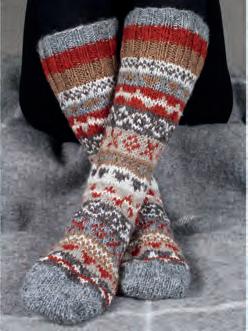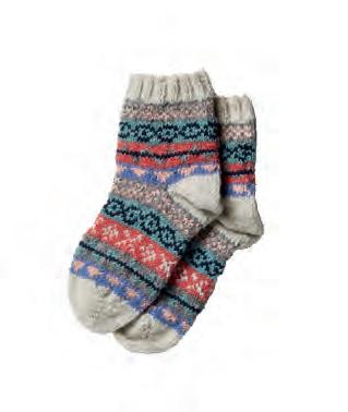 Hand knitted, unlined sofa socks with a classic fairisle pattern. Fits UK4-7. 100% wool