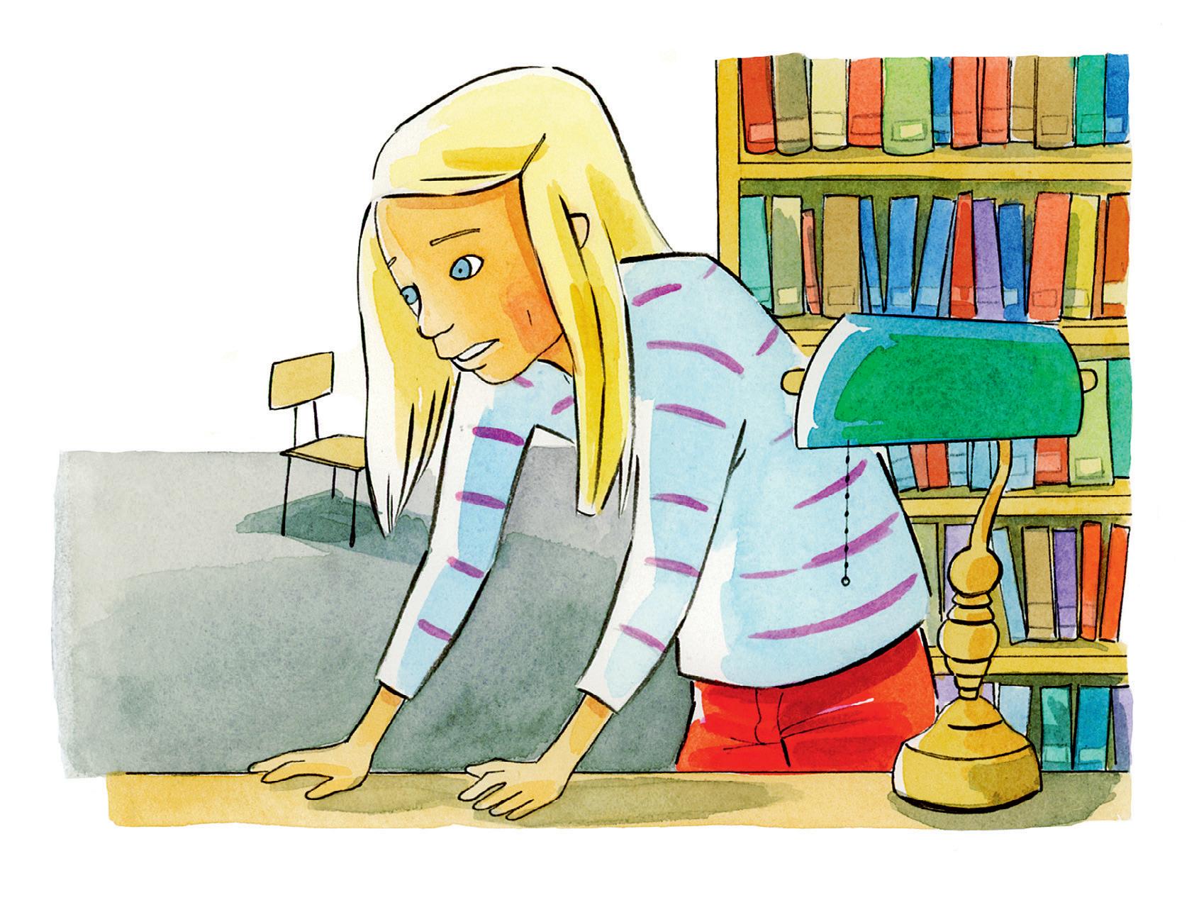 »Man kan tro att storleken på texten är avgörande för läsbarheten, men lika viktigt är luften runtomkring bokstäverna, raderna och textstycket. Hur man bryter raderna har också betydelse. På låga stadier vill man helst inte bryta meningarna alls. Det ska kännas naturligt att läsa, särskilt för de elever som nyss knäckt koden. Min uppgift är också att se till att text och bild samarbetar och skapar en helhet, det behöver finnas lagom mycket text och en tydlighet i layouten. Eftersom ABC-klubben är uppbyggd utifrån tre nivåer behöver jag ta hänsyn till både svaga och starka läsare. I Den magiska kulan läsebok A använde jag t.ex. ord med versaler i pratbubblor och ett linjärt typsnitt i lästexterna. Det liknar de bokstäver som eleverna lär sig att skriva. De har bl.a envånings- a och -g. Läsebok B och C har ett typsnitt som kallas antikva, det används i de flesta löpande texter (brödtext). Det ger en god läsbarhet eftersom ordbilden är tydlig och lätt att läsa.«