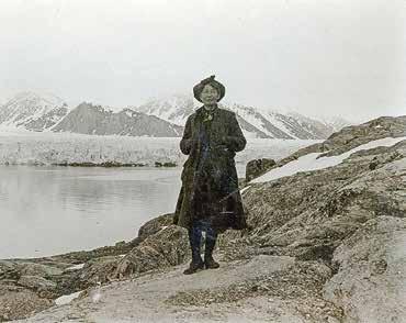 Hanna Resvoll-Holmsen foran Blomstrandbreen på Svalbard, sommeren 1908.