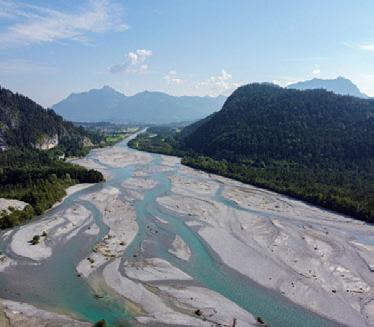 Der Tiroler Lech ist unverwechselbar! Er ist der letzte Wildfluss im nördlichen Alpenraum und zeigt als „Letzter Wilder“ in seinem breiten Flussbett eine weitgehend natürliche Dynamik mit mächtigen Kies- und Schotterbänken. Fluss arme verzweigen und vereinen sich. Steine aus den Seitentälern werden ständig umgelagert und vom Lechwasser weitertransportiert. Diese Geschiebeführung ist ein bestimmendes Charakteristikum einer Wild flusslandschaft. Die markante hellblau-türkise Farbe des Wassers ist ein Mar kenzeichen des Tiroler Lechs.