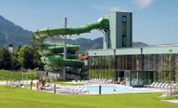 Bad Alpentherme Ehrenberg in Reutte mit Riesenrutsche, Bad und Saunalandschaft