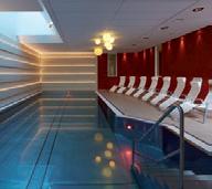 • Wellnessbereich (550 m2): Finnsauna, Biosauna, Kräuterdampfbad, Erlebnisdusche und Ruhebereich, elegantes Hallenschwimmbad mit Gegenstromanlage und Massagedüsen