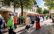 Die Stadt Füssen am Lech ist Kreuz punkt der „Romantischen Straße“ und der „Deutschen Alpenstraße“, gilt als Wiege des europäischen Lauten- und Geigenbaus und beeindruckt mit zahl reichen Kunstschätzen aus der mehr als siebenhundertjährigen Stadtgeschichte. Beim Flanieren in den mittelalterlichen Gassen sorgen kleine Geschäfte und zahlreiche Straßencafés der Stadt, die einst Sommersitz der Fürstbischöfe von Augsburg war, für ein fast italienisches Flair. Auf dem Forggensee, der lediglich in den Sommermonaten volle Stauhöhe besitzt, starten mehrmals täg lich zwei Fahrgastschiffe zu Rundfahrten, die einen atemberau benden Panoramablick auf die Stadtsilhouette, die Königsschlös ser sowie auf die imposante Bergwelt der Ammergauer, Tannheimer und Lechtaler Alpen bietet.