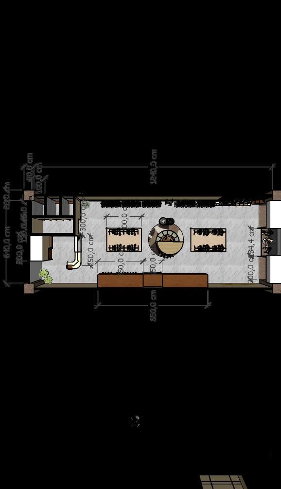 Konsep: Desain interior ini mempunyai kesan elegan, bersih, dan mengutamakan efisiensi penggunaan ruang. Warna yang dipakai adalah warna-warna netral ataupun warna pastel yang masih senada agar pelanggan tetap merasa tenang dan nyaman.