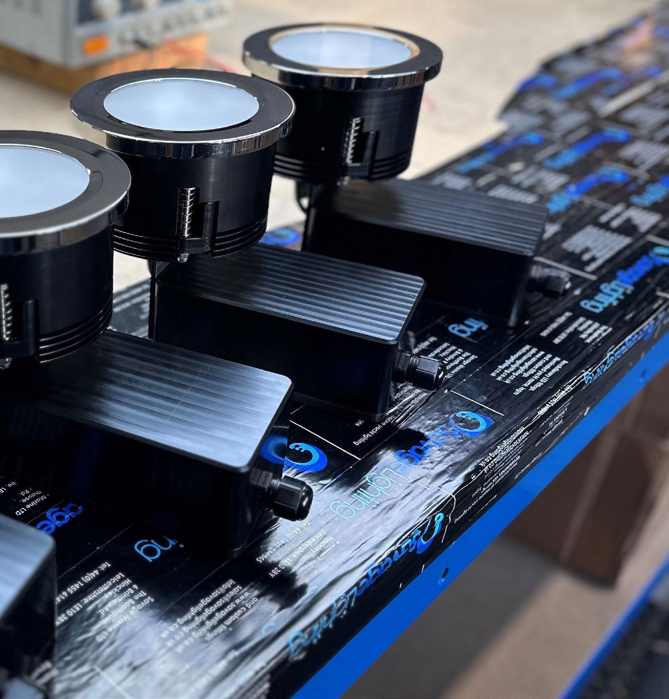 products, we offer a refurbishment service, why replace when you can refurb, for example should a client wish to upgrade from old halogen system to LED, and some parts of their existing fittings are still usable, as we design and manufacturer we can offer a full restoration and upgrade service, therefore minimising waste, we also can manufacture to suit existing cutouts, again this then dismisses the need for replacement overheads, we also look at using Recycled ocean waste materials, where we can in our manufacturing materials, we will also have a new facility in 2026 and sustainability, is key to the design and build of the new HQ