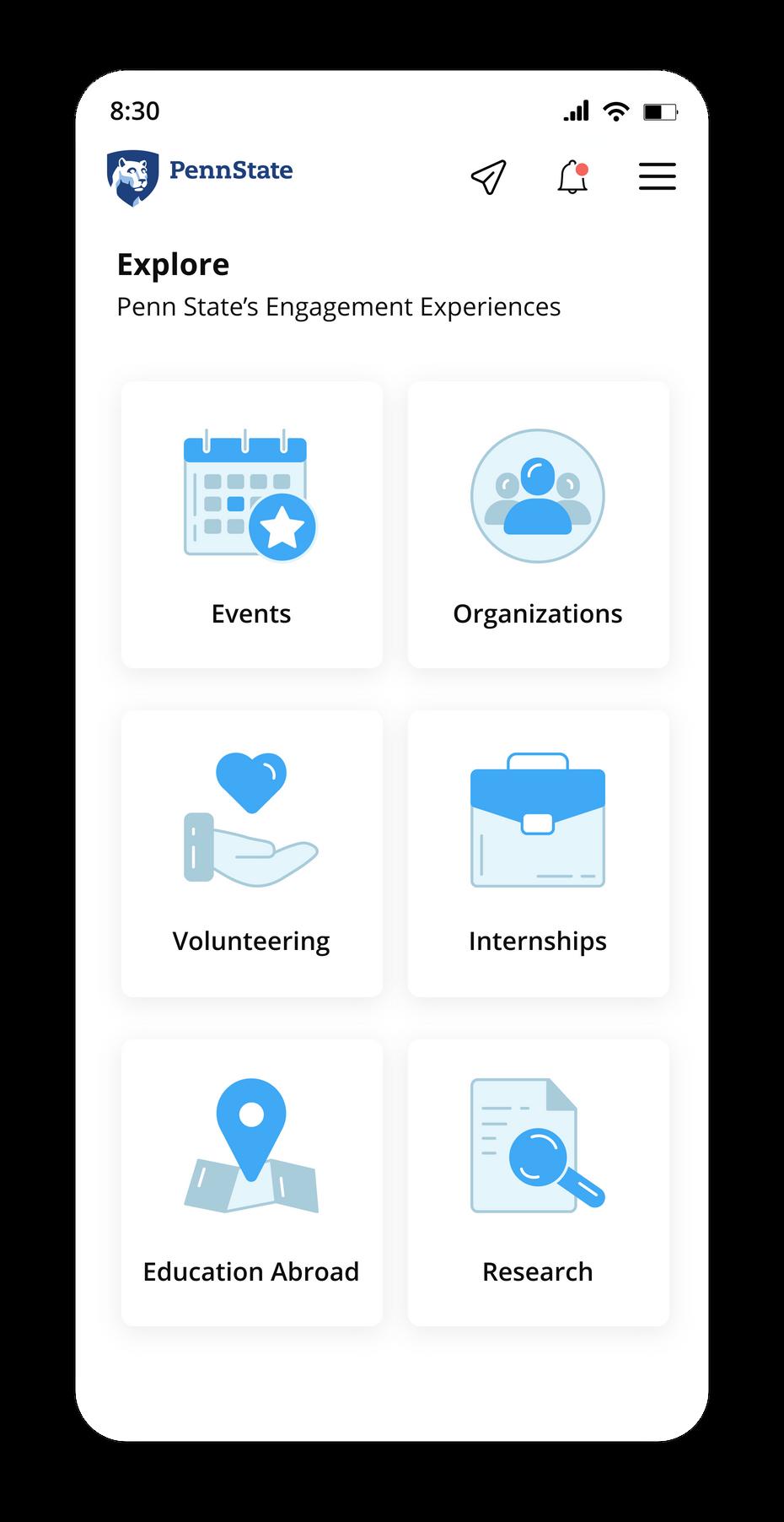 As Penn State Alumni, we are proud to partner with our Alma Mater to rethink the student experience. With the Engagement App, students can navigate Penn State's wide range of engagement opportunities with ease. Not only does the app act as a resource hub, it serves as a social tool to help students find others within their campus communities who share their interests