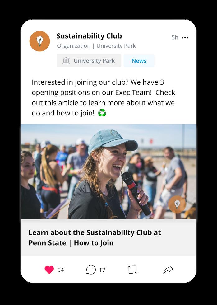 by follower count "The Engagement App helped me so much when transferring campuses to learn more about student organizations and how I could become involved." Penn State Student '24