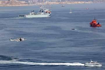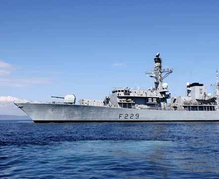 The Type 23 frigate later took part in Joint Warrior (see page 6), a tenday Allied forces workout on land, sea, and in the air. Involving more than 20 ships, submarines and supporting vessels from Britain and nine NATO allies, plus over 30 aircraft and drones, Royal Marines and US Marines, the workout ranged from Cape Wrath and the Hebrides to the North Sea and finally the waters off the South Coast.