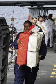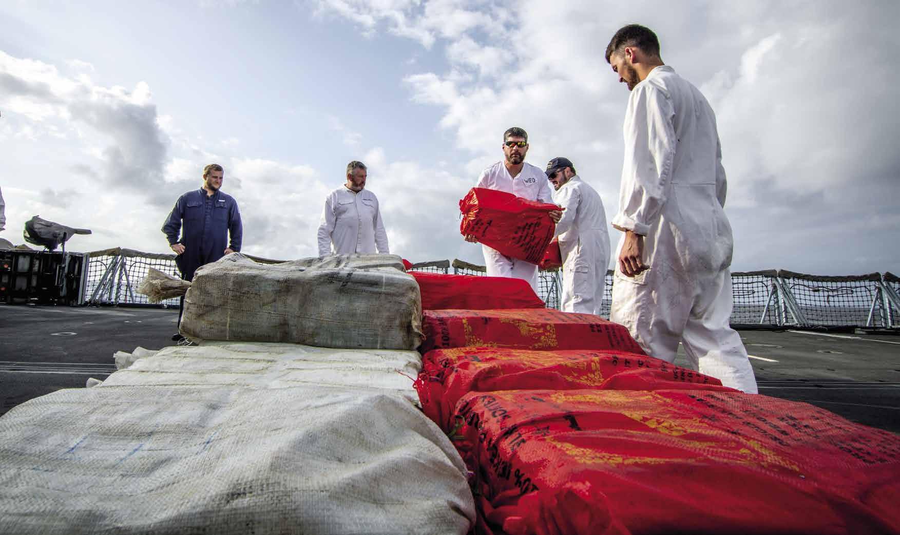 STACKING up what will eventually total 870kg of crystal methamphetamine on their flight deck, it’s another red letter day for the men and women of HMS Montrose.