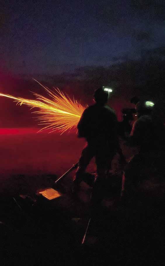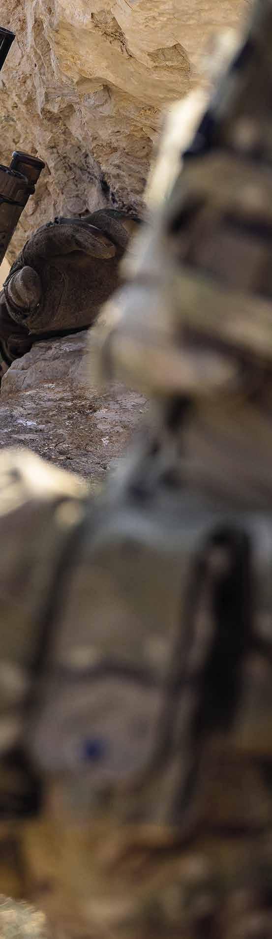 The wings of the Royal Marines are central to the success of the Achillean deployment, providing both aerial lift (Merlin Mk4s of 845 NAS, ferrying troops and kit around) and firepower and intelligence (Wildcat AH1s of 847 NAS, guiding in artillery and air strikes). The squadrons made use of Gibraltar’s new guardians, patrol boats HMS Cutlass and Dagger, for some combined training in waters around The Rock (see page 11).
