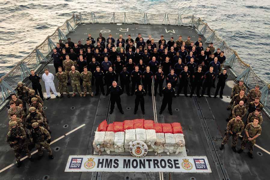 HMS Montrose smashed the £100m barrier with her fifth drugs bust of 2022 (see page 5).Her team of sailors and Royal Marines seized around 870kg of crystal methamphetamine from a dhow in the Arabian Sea during a six-hour operation.