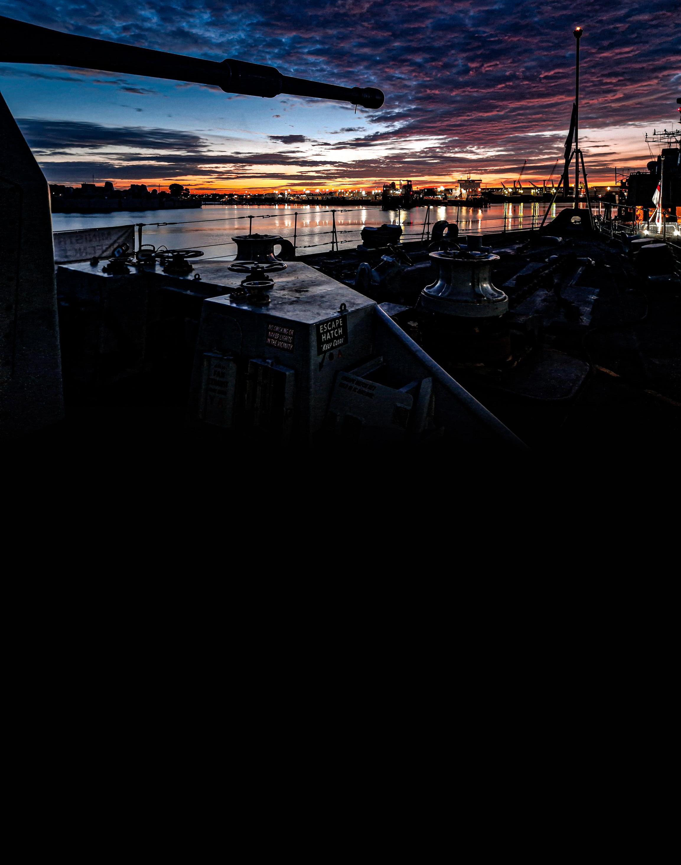 The jarring clang and shudder through the ship as a 4.5in shell thunders out of the barrel, accompanied by a brief flash of fire, then the orange-tinged pulver smoke drifting over the forecastle and the smell of cordite penetrating the ship.