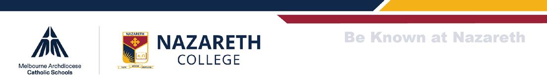 Nazareth College is a learning community centred on the person of Jesus Christ. Through learning and teaching in the Catholic tradition we foster a culture of faith, wisdom and knowledge.