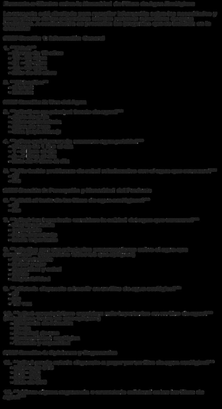 3. **SOLUCIONES ALTERNATIVAS**: M脡TODOS TRADICIONALES DE PURIFICACI脫N DE AGUA, COMO LA EBULLICI脫N O EL USO DE PRODUCTOS QU脥MICOS, AUNQUE NO SON SOSTENIBLES, PUEDEN SER OPCIONES QUE ALGUNAS FAMILIAS ELIJAN DEBIDO A SU BAJO COSTO.