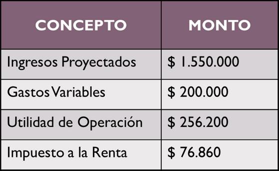 Calculamos la utilidad de operación y el impuesto a la renta.