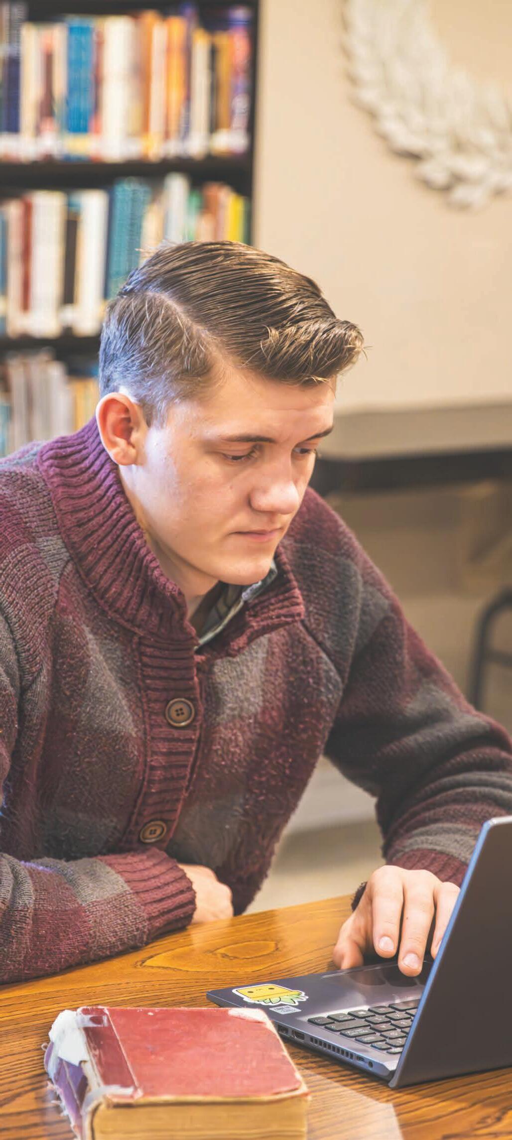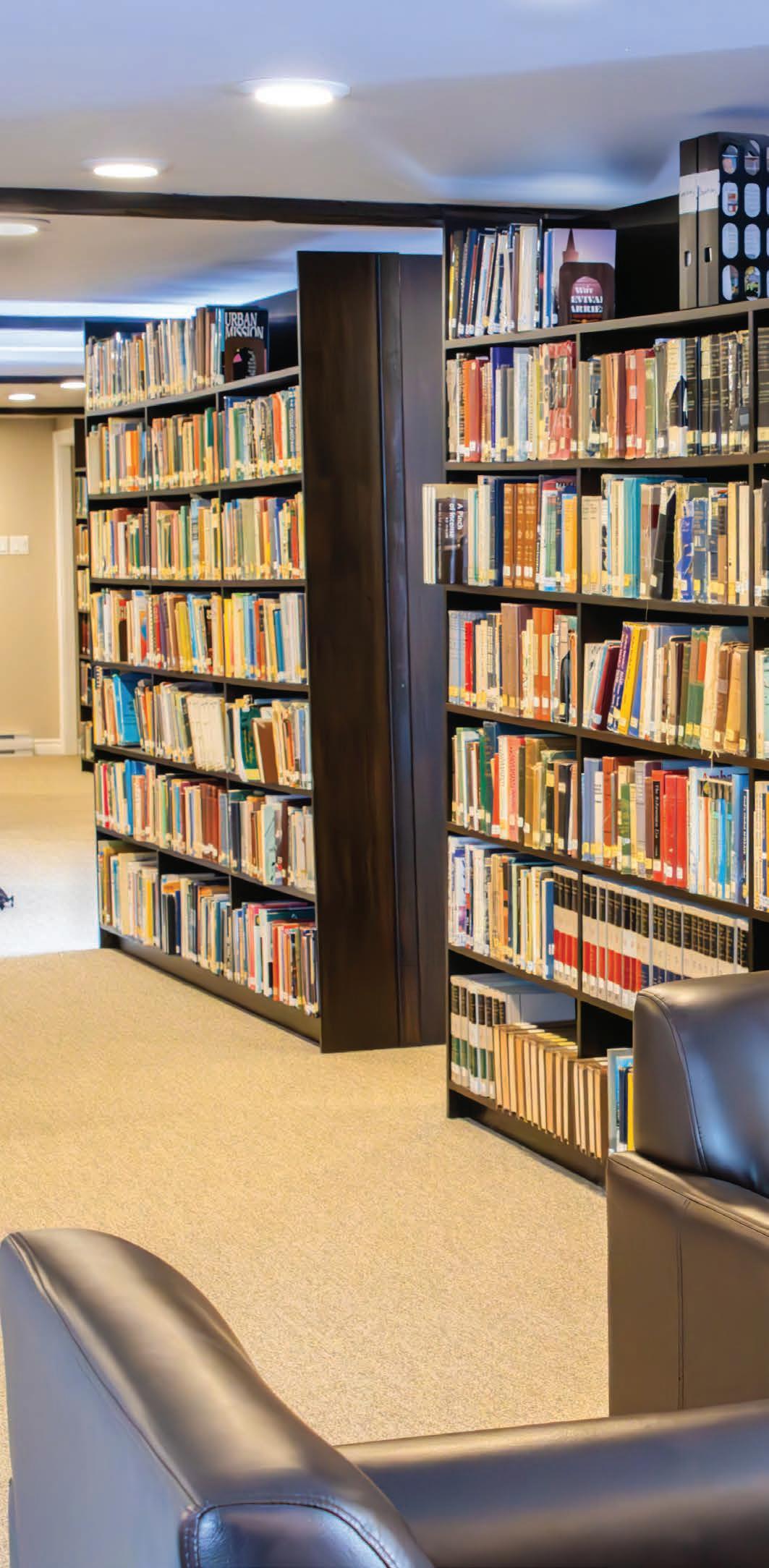 Our library, conveniently located off our classrooms, has many volumes for student use. Its cozy lounge and coffee counter provide a comfortable spot conducive to individual or small group study.