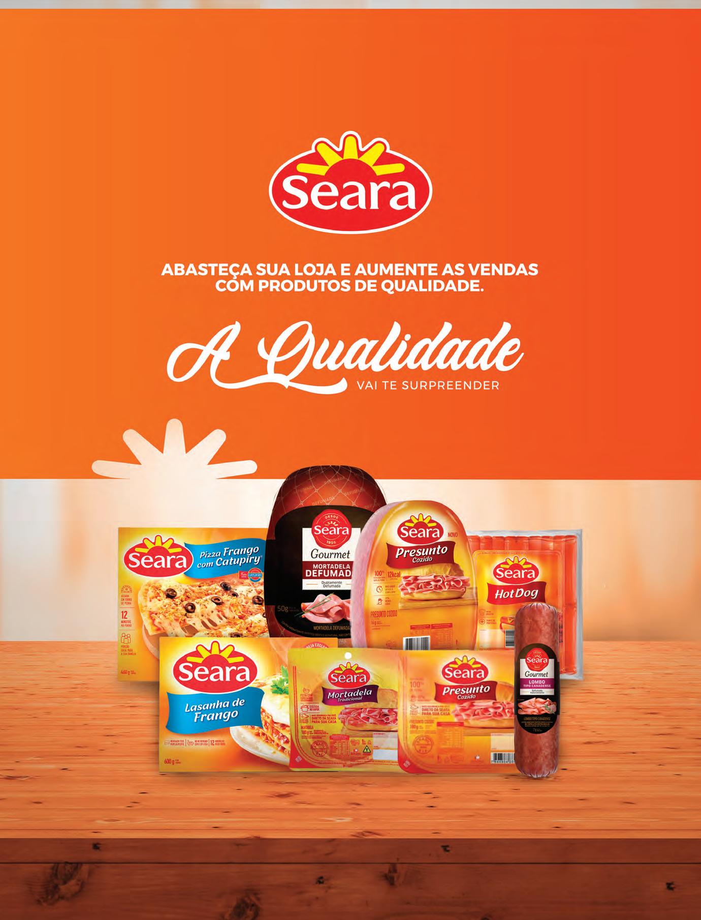 16 (65) 99603-7127 (65) 3054-6291 dacmt.com.br Um mix completo com as melhores marcas do mercado 67428 WRAP HOT HIT SEARA PIZZA 100GR 7894904246595 67430 WRAP HOT HIT SEARA FRANGO COM REQUEIJÃO 100GR 7894904246618 67429 WRAP HOT HIT SEARA COSTELA COM BARBECUE 100GR 7894904246601 1598 HOT HIT SEARA X-BACON 145GR 7894904678341 1600 HOT HIT SEARA X-PICANHA 145GR 7894904678280 2306 HOT HIT SEARA BACON E CHEDDAR 145GR 7894904215942 2223 HOT HIT SEARA CHEDDAR 145GR 7894904678303 1601 HOT HIT SEARA X-BURGUER 145GR 7894904678297 7961 HAMBURGUER SEARA TEXAS BURGER 672GR 7894904002450 1819 HAMBURGUER SEARA TEXAS BURGER GRANEL 56GR 7894904500383 7982 SALSICHA SEARA 5KG 7894904572465 4592 SALSICHA SEARA LONGUETTE 500GR 7894904009893 7980 SALSICHA SEARA FRANGO 500GR 7894904005833 7981 SALSICHA SEARA HOT DOG 500GR 7894904005482 7949 PATE SEARA PRESUNTO 100GR 7894904573387 7991 MORTADELA SEARA FRANGO TURMA MONICA 400GR 7894904597833 7914 MORTADELA SEARA CONFIANÇA KG 7894904861378 7968 MORTADELA SEARA SUINA CONFIANÇA 400GR 7894904834655 7966 MORTADELA SEARA MINI CONFIANÇA 1KG 7894904578245 2386 MORTADELA SEARA TIPO BOLONHA KG 7894904009640 5623 MORTADELA SEARA DEFUMADA KG 7894904005550 68541 LEVISSIMO SEARA 3,4KG 7894904252213 embutidos hamburguer patê salsicha