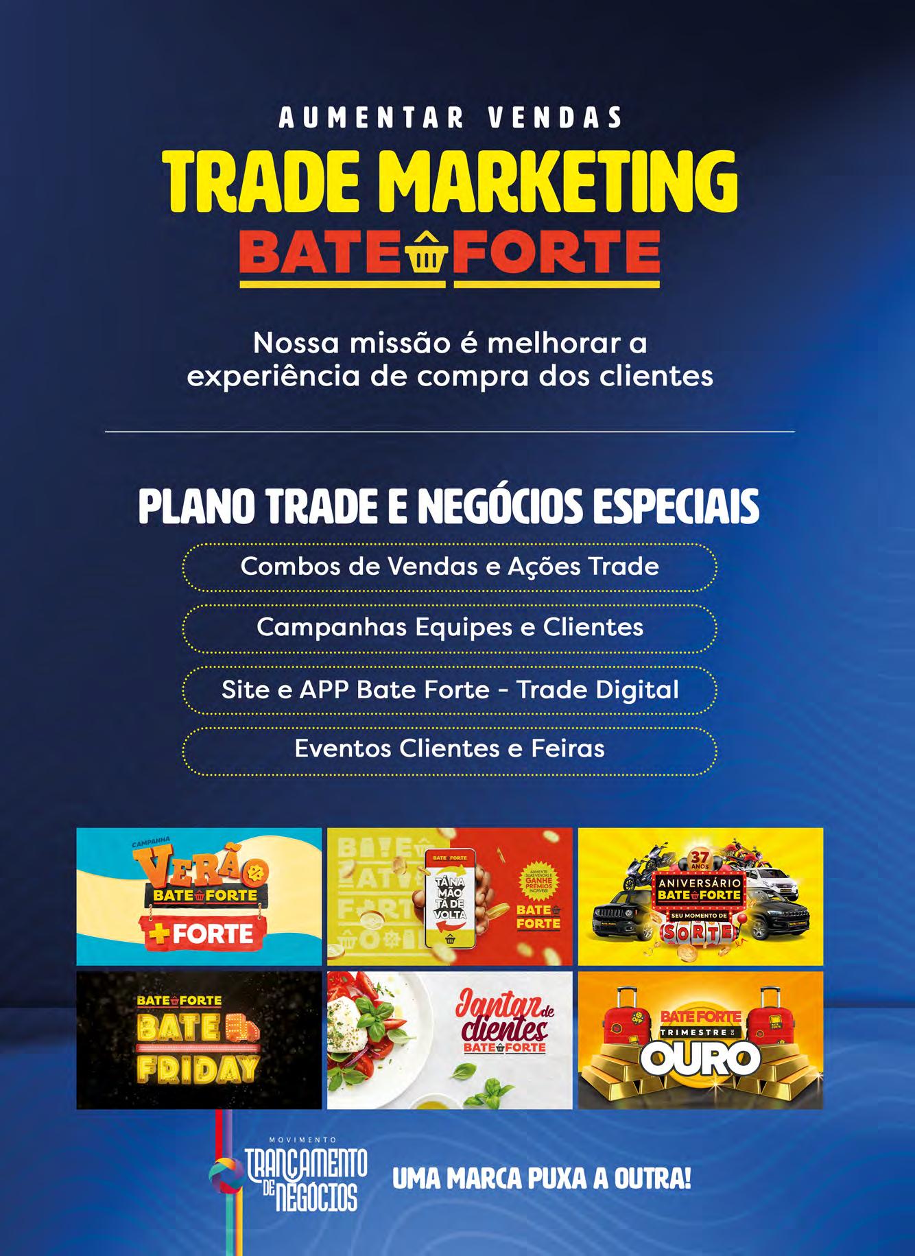 Estamos preparados para trabalhar neste cenário competitivo, com treinamentos de fornecedores que acreditam na força de vendas do Bate Forte, além de promover grandes campanhas desafiadoras para Rcas e clientes, preparadas pelo nosso Trade, como entregas rápidas, plataforma digital a serviço do cliente 24 horas por dia, investimentos nos clientes e equipe pronta para realizar seu trabalho, com bravura.