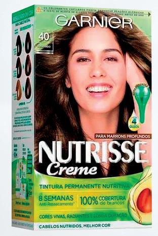 A Tintura para Cabelos da Nutrisse possui textura em creme, mais fácil de aplicar e não escorre e ainda conta com óleo Vitamina, em sua formulação, que penetra na fibra capilar e a protege do ressecamento, deixando seus cabelos mais macios, brilhantes e perfumados. Nutrisse Creme é o único com Blindagem Nutritiva, que fixa a cor profundamente e por mais tempo. Sua textura creme é de fácil aplicação e não escorre.