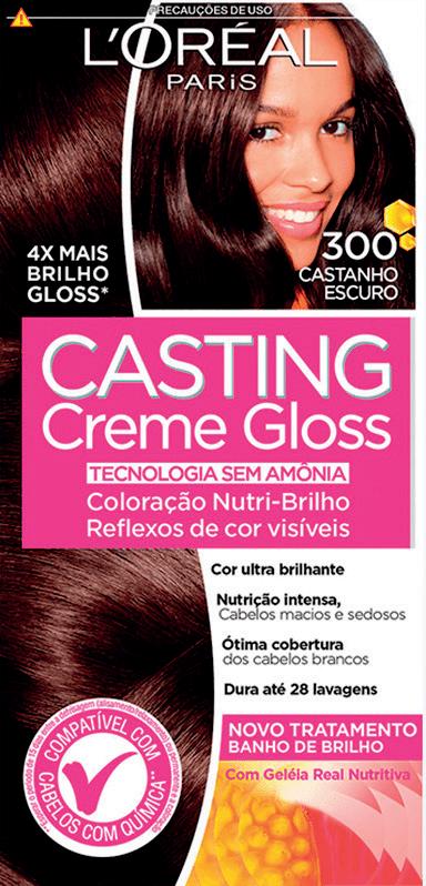 Casting Creme Gloss é a coloração sem amônia de L’Oréal Paris que garante 4X mais brilho para os fios. Casting Creme Gloss pode ser usado até em cabelos com química. Durante a coloração, sua exclusiva fórmula reforça a fibra capilar, deixando seus fios mais macios com um toque aveludado.