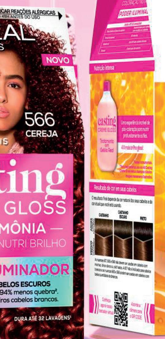 Desenvolvida para clarear e colorir cabelos escuros sem amônia, Casting Creme GlossPoder Iluminador garante uma transformação de cor visível, deixa o cabelo mais nutrido com o tratamento pós-coloração com Geleia Real, garante 4x mais Brilho Gloss¹, além de ser uma coloração que respeita os diferentes formatos de fios.