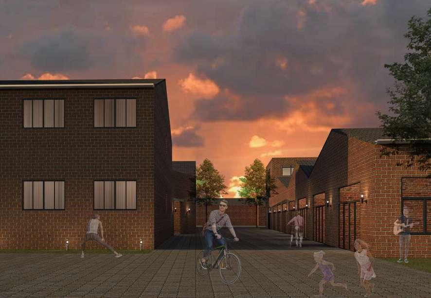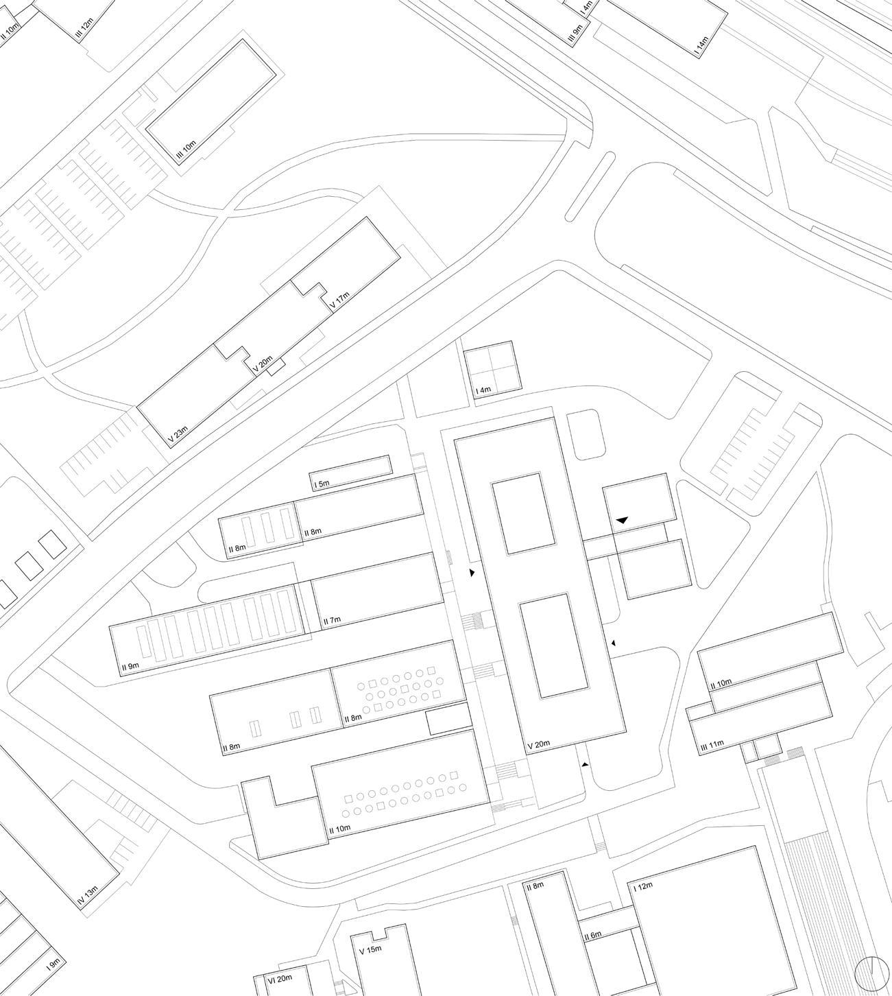 Die frei gewordenen Grundrisse ermöglichen eine flexible Anpassung der Räume. Die Halle an den Seiten des Hotels kann durch den Einbau von Trennwänden in verschiedene Arten von Hotelzimmern umgewandelt werden, während die mittlere Halle als Veranstaltungsbereich für das Hotel und zur Vermietung an Bewohner in der Nähe dienen soll. Um den Charakter des Mauerwerks zu bewahren, wird der Innenputz entfernt und die Fassade durch zweischaliges Mauerwerk zur Verbesserung des Wärmeschutzes modifiziert. Die Öffnungen bleiben proportional als die Errinnerung von Typologie der Werkhalle, jedoch sollen die alten Fenster und Türen durch wärme- und schallgeschützte ersetzt werden.