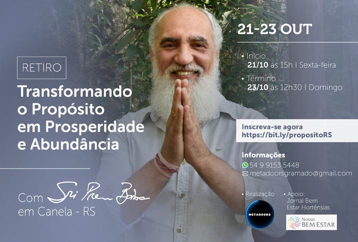 Sri Prem Baba é um mestre espiri tual brasileiro. Seu nome hindi significa em sânscrito “ Sri” quer dizer senhor, “Prem” amor divino e “Baba” pai espi ritual. Em Rishkesh , na Região dos Hi malaias ,na India, encontrou seu grande professor e mestre espiritual Sri Hans raj Maharajii , que o iniciou nos aprendi zados da antiga linhagem Sachcha , que tem como missão despertar o amor em todos e em todos os lugares. Seu tra balho e ensinamentos já promoveram transformações profundas e significati