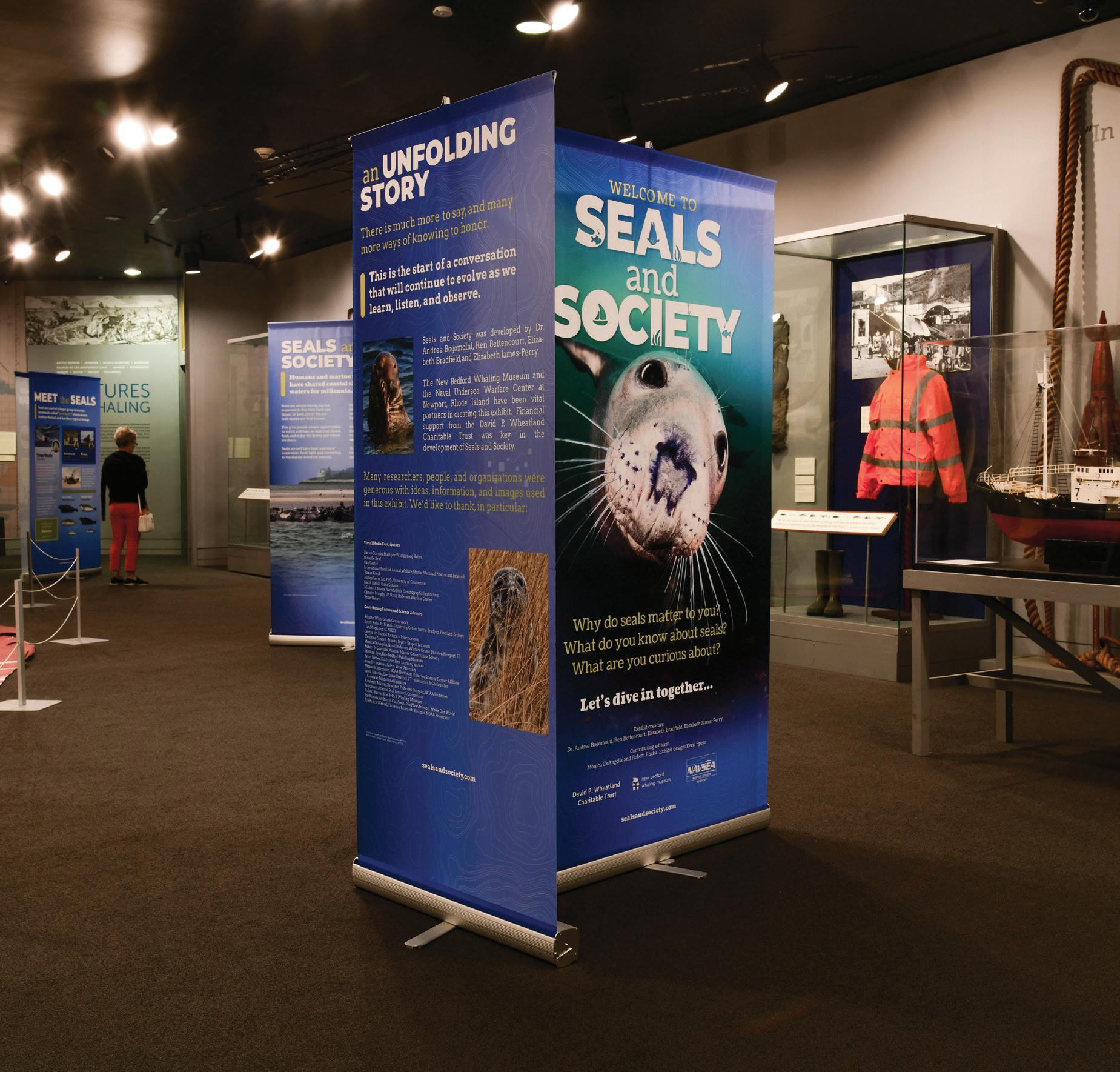 Rocha, NBWM Associate Curator of Science and Research, and Monica DeAngelis, Marine Mammal Biologist at NUWC. The multi-panel exhibition dives into the daily lives of these specially adapted animals, with a focus on harbor and gray seals, and is currently traveling to coastal education and marine science centers throughout New England. To learn more, visit: www.whalingmuseum.org/exhibition/ seals-and-society/