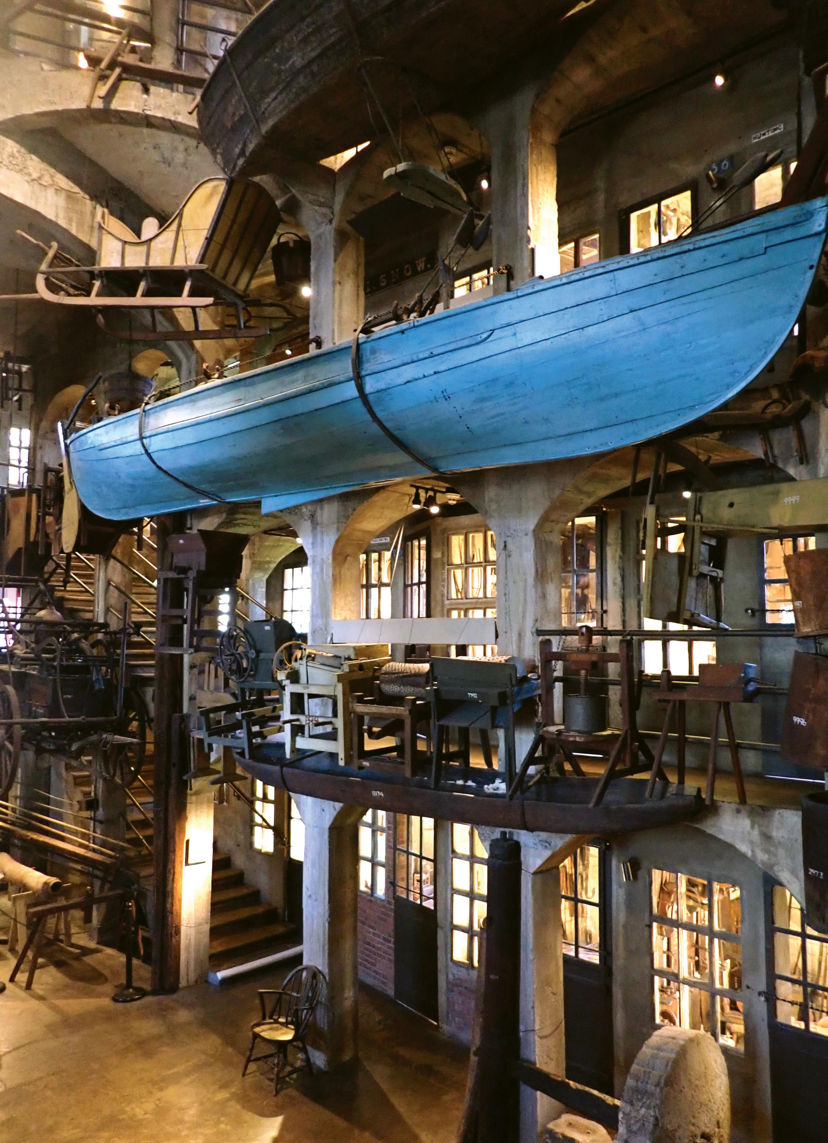 Figure 1. Central court of the Mercer Museum with whaleboat, photograph by author, March 2023.