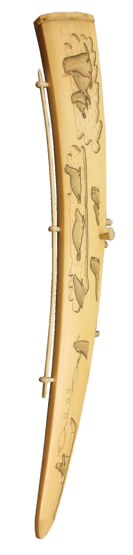 Figure 4. Billy Komoneseok, Walrus Tusk Cribbage Board with Scene of Seals, 1911. Walrus ivory. Gift of Mrs. Edgar R. Lewis. NBWM 1935.68.31.