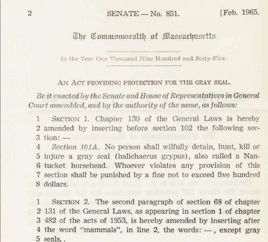 Figure 1. “An Act Providing Protection For The Gray Seal,” Massachusetts State Library, 1965 Chap. 0129. http://hdl.handle. net/2452/3109