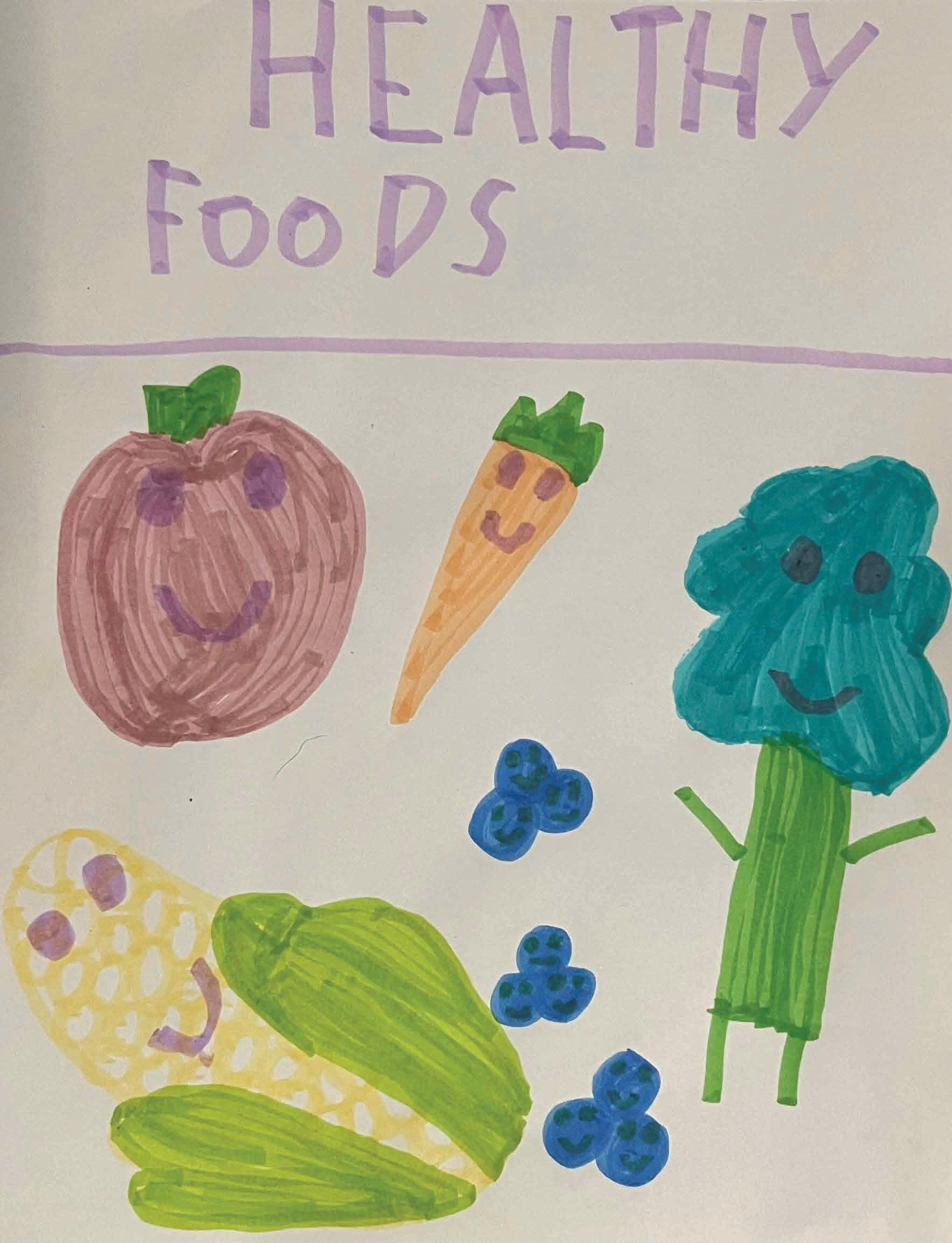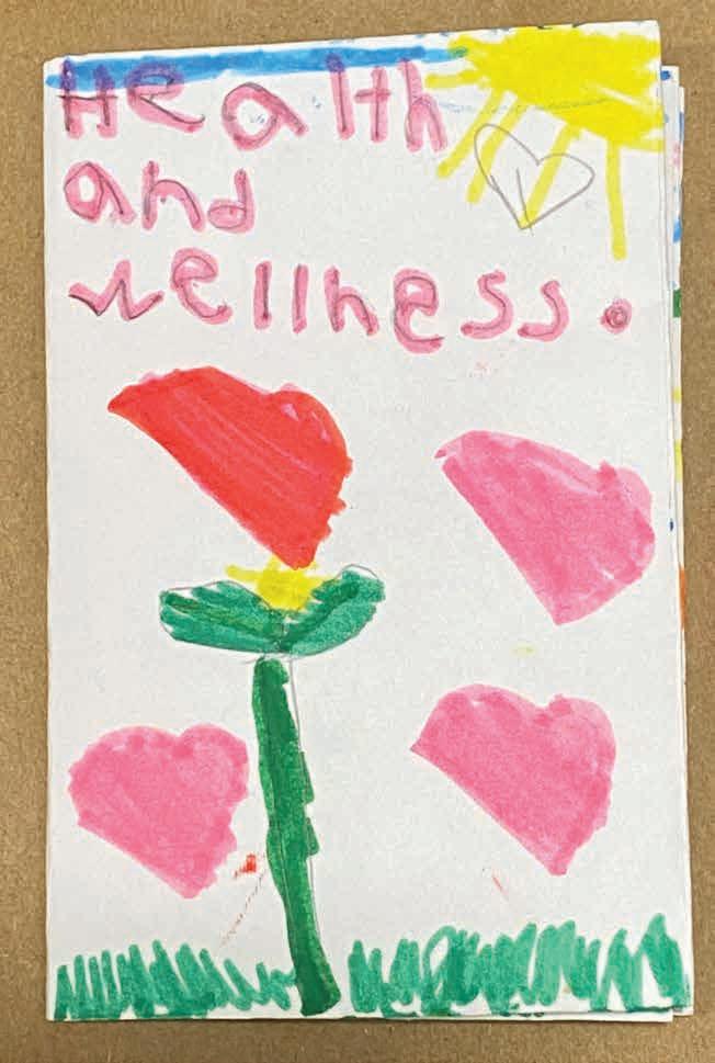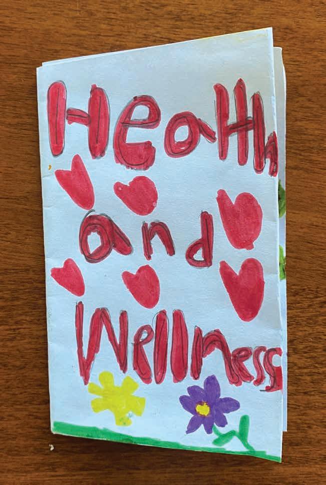 The page of the drawing of herself holding our family cat is a display of happiness “Wellness = Joy”, it explains that if you keep your wellness a priority it will turn to joy! Proves wellness is crucial for wellbeing.