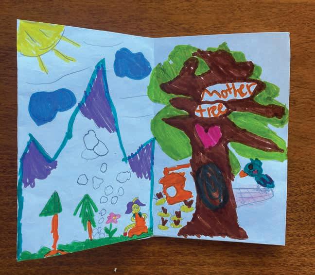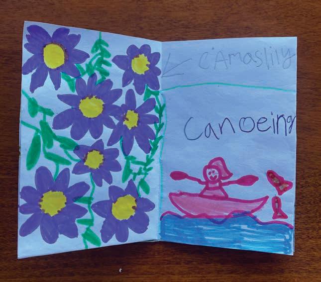 This booklet of drawings includes: “Health and wellness”, “I love the earth”, “Mother tree”, “Camas lily”, “Canoeing”, “Dandelion”, and “Fishing”.