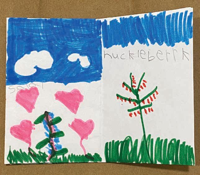 This booklet of drawings includes “Health and wellness”, “Oregon grape” “Camas lily”, “Heart”, “Dandelion”, “Fireweed”, “Salay”, and “Huckleberry”.