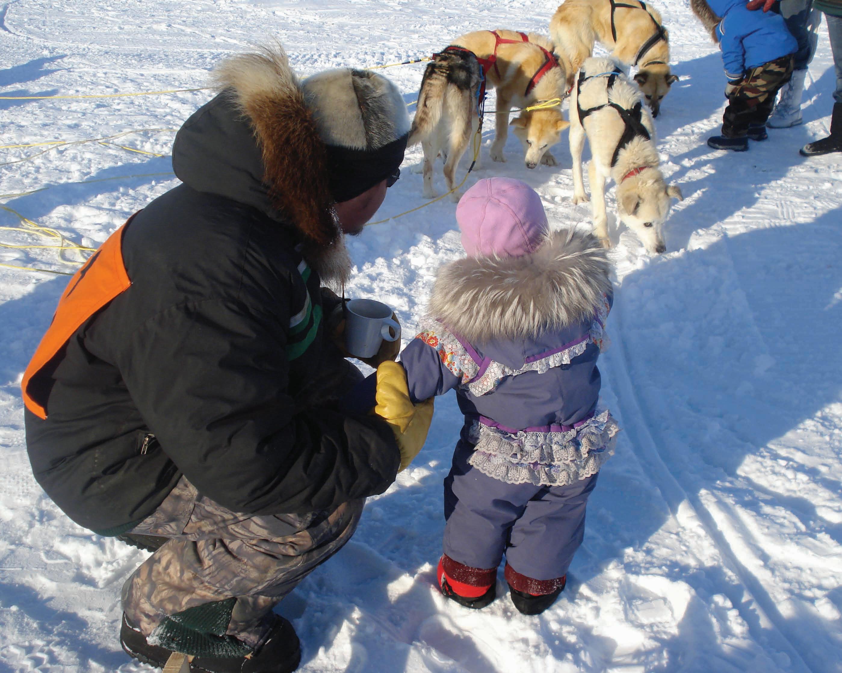 Encouragez l’utilisation de la langue inuktut à la maison et interagissez souvent avec des Aînés et des membres de la famille. Participez à des activités culturelles qui aideront votre enfant à développer une solide identité culturelle et un sentiment d’appartenance à une communauté. Soulignez les premières fois où votre enfant adoptera des usages traditionnels, comme sa première prise ou son premier parka. Établissez des liens avec la famille avvaq à laquelle votre enfant est rattaché et racontez-lui des histoires sur son homonyme de manière à construire son identité et à renforcer le sentiment d’avoir un but dans la vie.