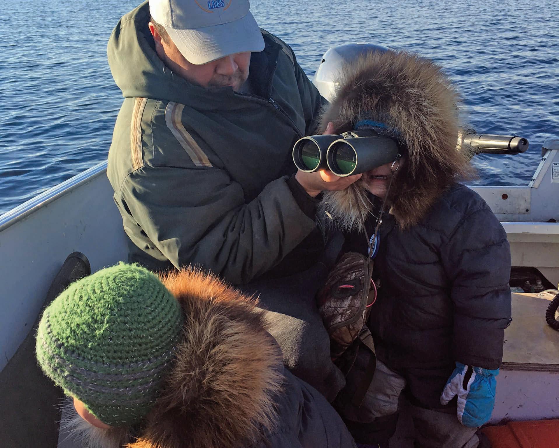 Un jeune garçon suivra la voie tracée par son père – ce qu’il voit, ce qu’il entend. Il commence à se dire qu’il sera comme son père. Tout en aidant son père, il parcourt le territoire et, comme il apprécie le paysage, il commence à développer ses aptitudes pour la chasse. Il s’agit d’une période idéale pour parler à votre enfant – il a besoin d’entendre des renseignements utiles et d’apprendre des manières de bien faire les choses. On doit garder à l’esprit que nous devons planifier notre avenir – il s’agit de la manière de vivre des Inuits. Nous avons une foule d’enseignements à assimiler pour être toujours préparés, sans rien gaspiller parce que tout est précieux. C’est ainsi qu’un père inculque de bonnes habitudes de vie à son enfant.