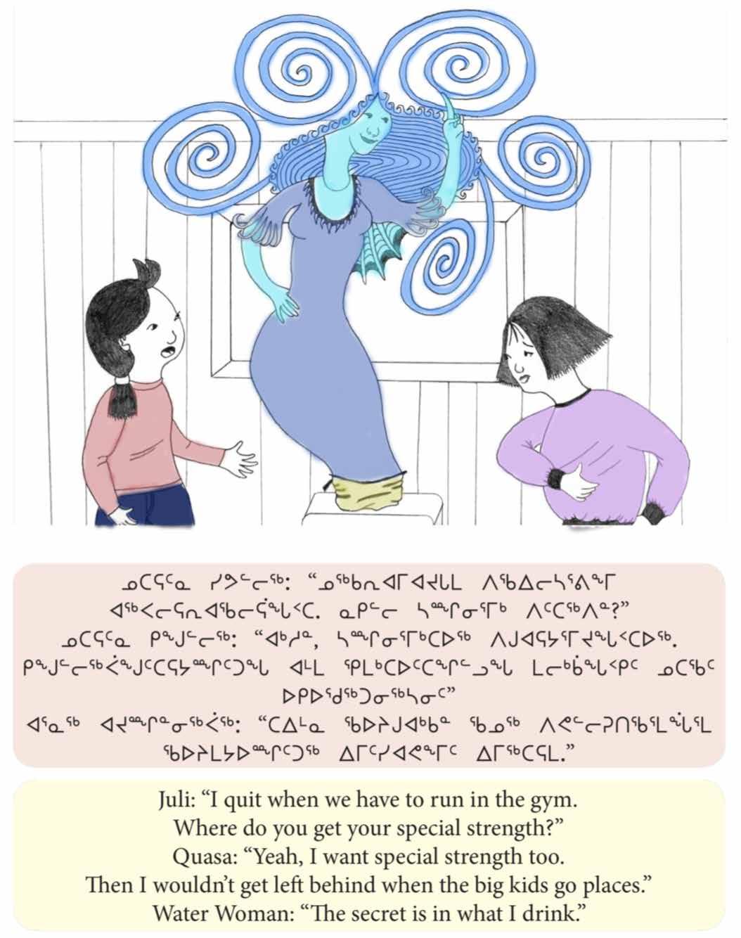 Dame de l’eau : « Je suis la Dame de l’eau. J’ai un pouvoir spécial. Je persévère, sans jamais abandonner. J’ai de l’endurance. »