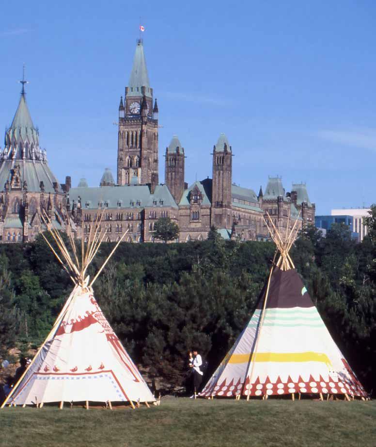 2 Bien que de nombreuses Premières Nations considèrent le traité comme une relation de parenté établie avec la Reine, les traités post-confédération sont considérés dans le droit colonial comme étant établis avec le Canada en tant qu’État. Cette interprétation