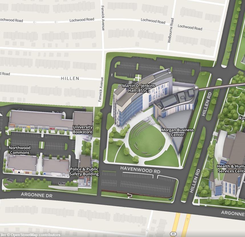 It can take more than an hour to walk the entire Morgan State campus. The campus runs north-south along Hillen Road and intersects Coldspring Lane and Argonne Drive. The campus is divided into several sections – North Campus, the Quad, Morgan Commons, and West Campus. It is a very walkable campus that is connected by three pedestrian bridges that spares students from crossing streets and frees the campus of vehicular traffic.