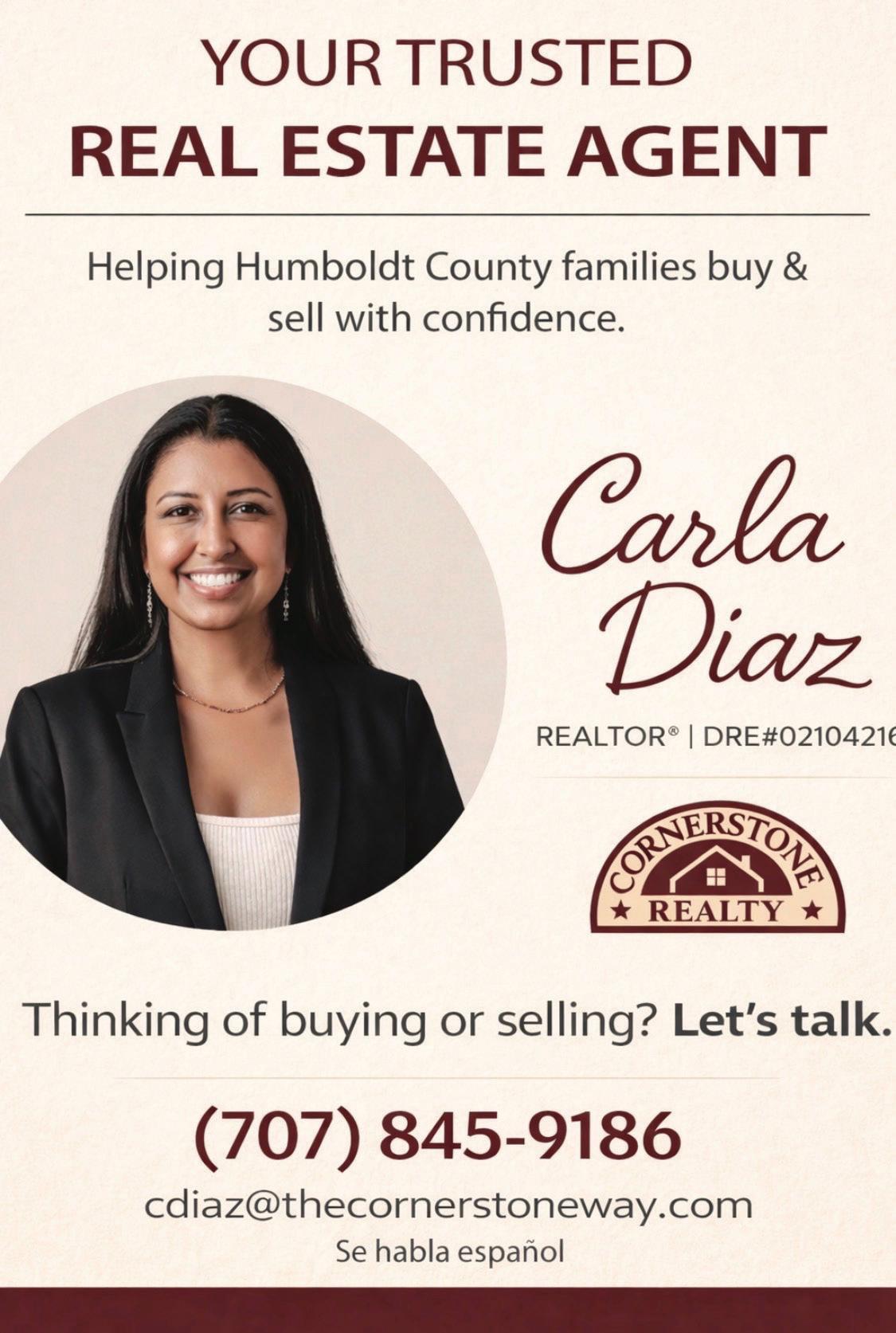 Small Business of the Year Nominee - Cornerstone Realty Cornerstone Realty has proudly served Fortuna and the greater Eel River Valley since 2006, with our office located on Main Street in the heart of town. Built on a foundation of integrity, local knowledge, and relationships that extend well beyond a single transaction, Cornerstone is a full service real estate brokerage ranging from residential, investment, and even commercial sales. Our team includes nine dedicated agents and one full-time employee, all committed to providing knowledgeable, personalized service. As a locally owned and operated business, we are deeply involved in the community, supporting local events, youth programs, schools, nonprofits, and volunteer efforts throughout the year. From cheering in the stands to lending a hand at community events, we believe showing up matters. At Cornerstone, real estate is about more than buying and selling property; it’s about helping neighbors put down roots and strengthening the community we’re proud to call home.