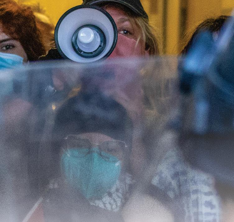 Another uno cial ceremony took place at the Humboldt County Courthouse the same day without the university administration. At 2:30 p.m. Humboldt for Palestine organized a commencement for graduates who wanted to honor the lives of those lost due to the violence in Palestine. Many participating graduates wore Palestinian ke yeh scarves as they sat on the courthouse steps and listened to speeches by faculty and fellow students. Dozens of community members gathered around to celebrate the 2024 graduates, some of whom opted out of the commencements held by CPH.