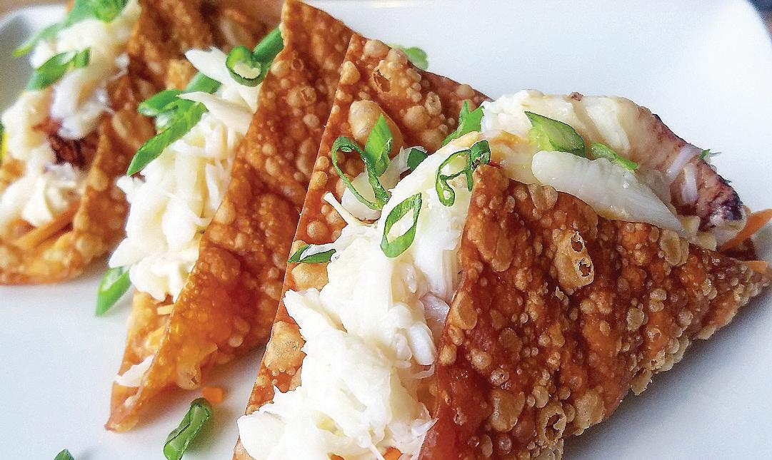 Fresh ahi, avocado, cilantro, jalapeño, red onion, fresh lime and citrus aioli, all wrapped in glutenfree rice paper.